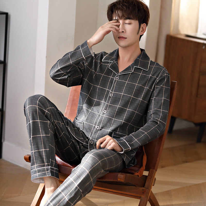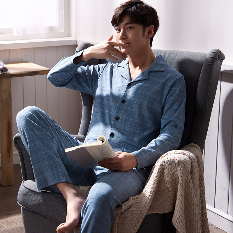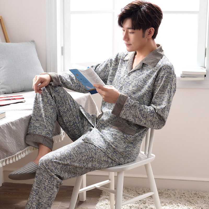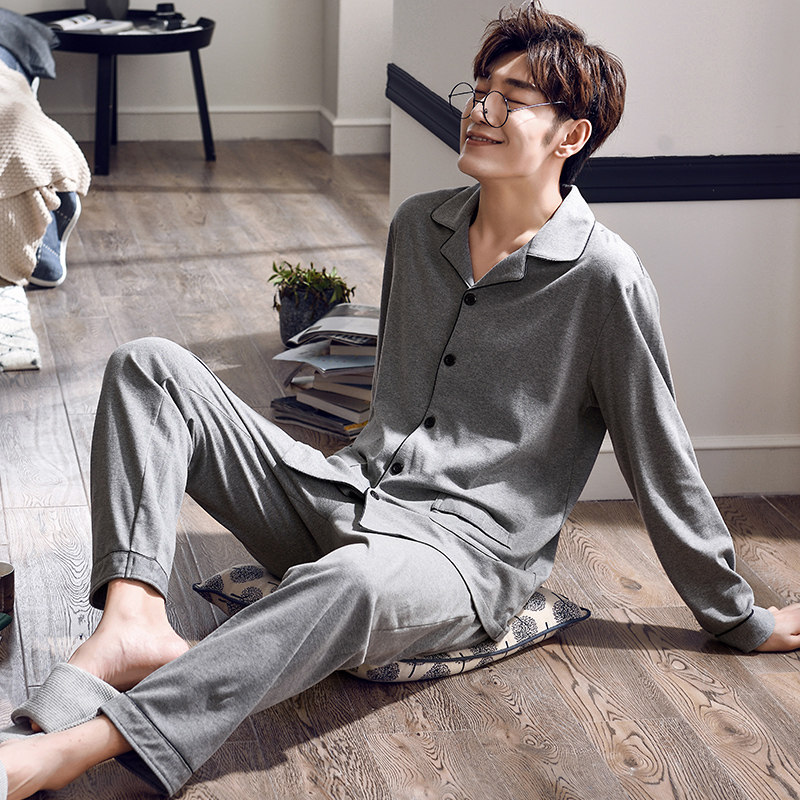 Cotton pajamas spring and autumn men's home clothing long sleeve thin cotton plus fat plus size set men's autumn and winter