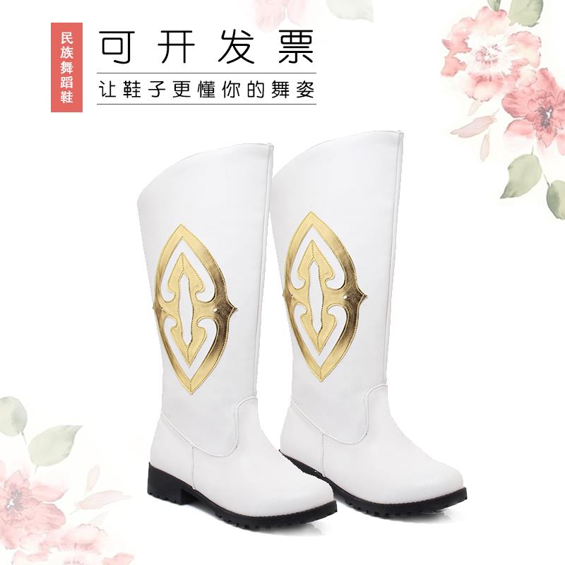 New Mongolian dance show boots Mongolian shoes men and women stage Tibetan prairie horse boots wear white