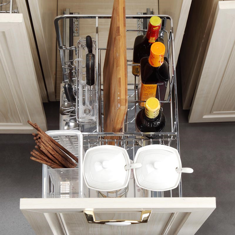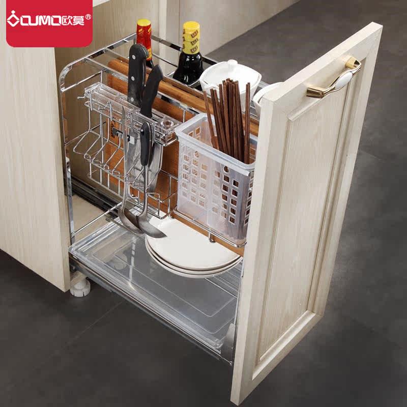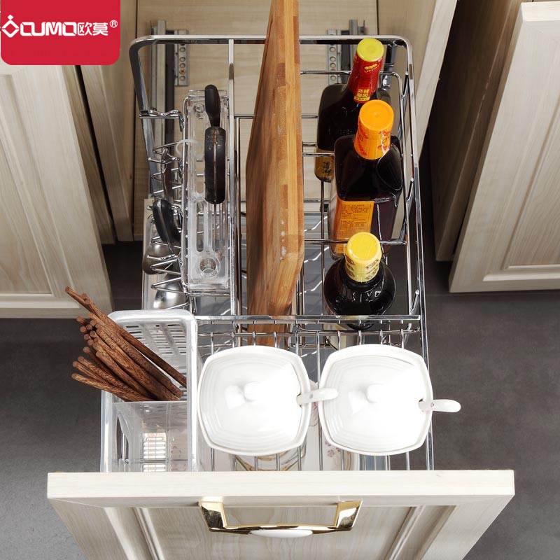 Omo kitchen pull basket stainless steel seasoning basket pull basket kitchen cabinet seasoning rack pull basket with damping guide rail