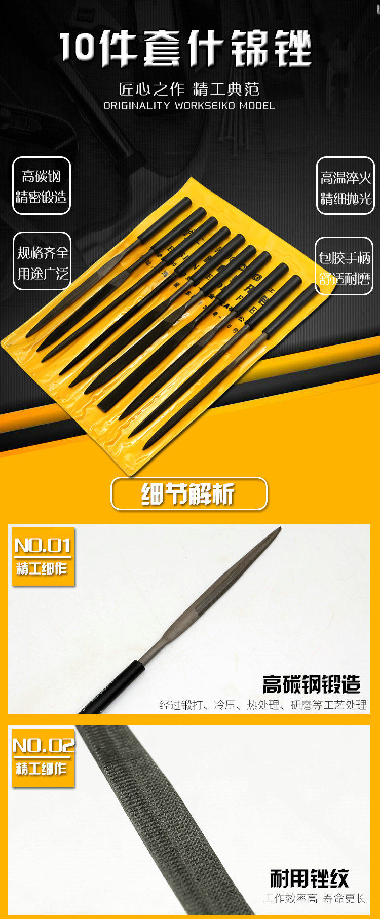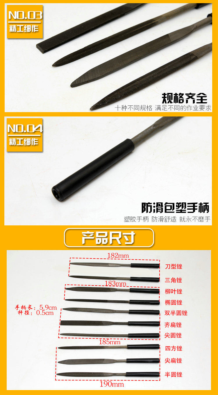 Assorted file 10-piece set of plastic handle shaping file 3×140mm 4×160mm set small knife