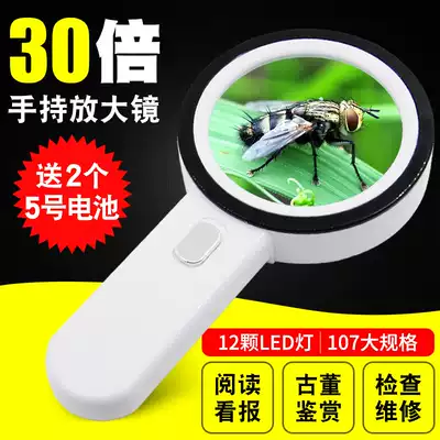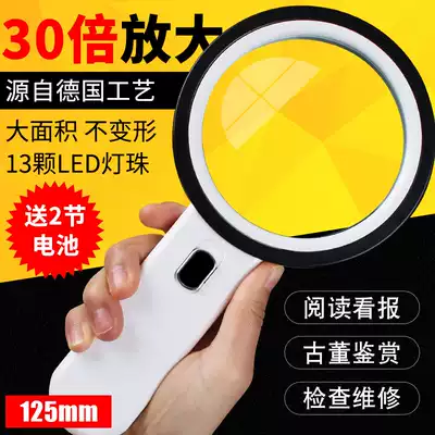 30 times high definition handheld magnifying glass with LED light high power mobile phone repair elderly people reading high definition jewelry identification