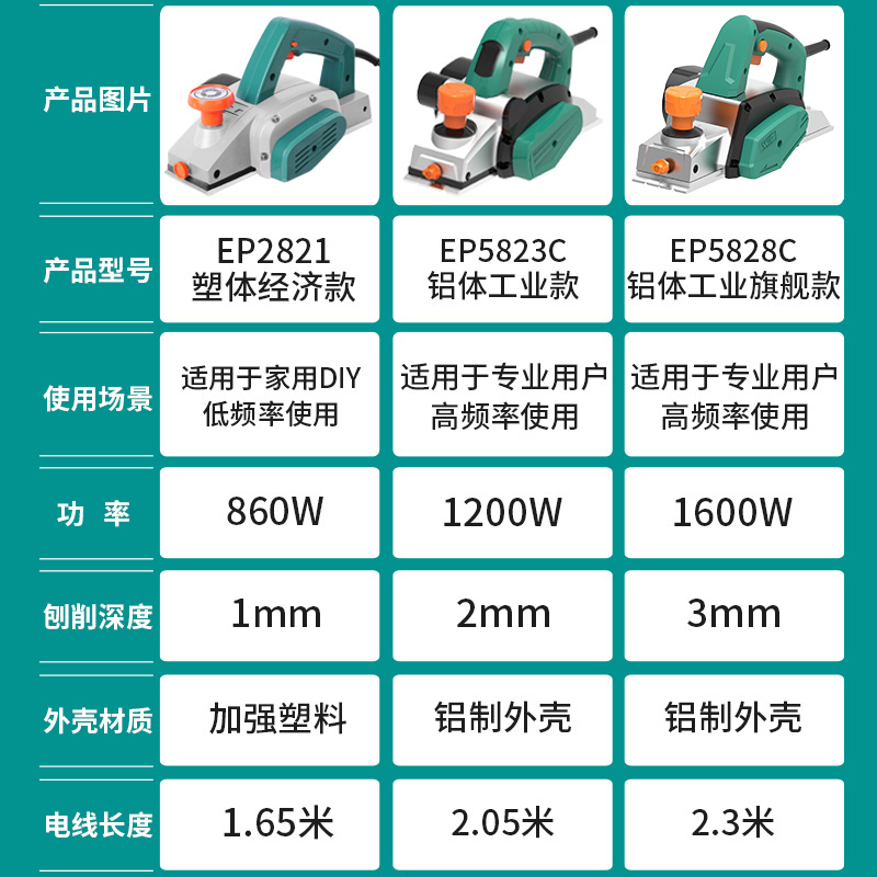 EP2823C economical aluminum body electric planer plastic box EP2823C economical flip electric planer EP5823 aluminum body engineering grade electric planer EP5823 aluminum body engineering grade flip