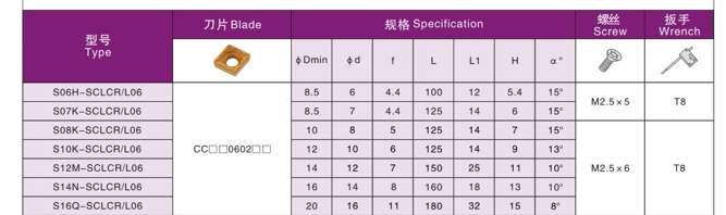 S06K-SCLCR06 positive knife (spring steel) S06K-SCLCL06 counter-knife (spring steel) S07K-SCLCR06 positive knife (spring steel) S07
