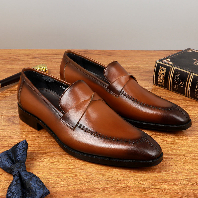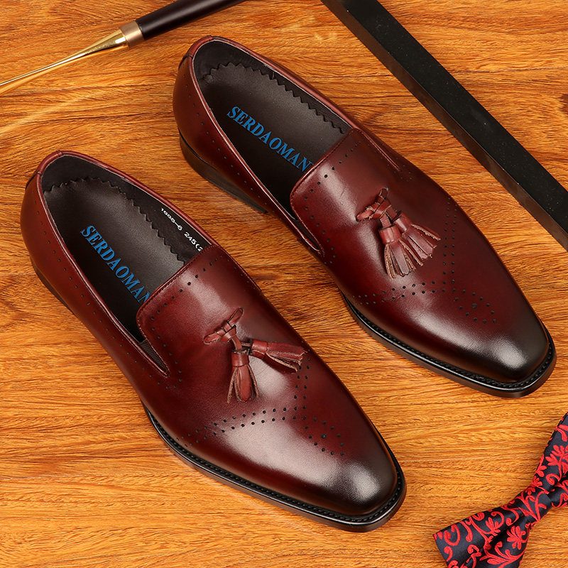 British Brock Carved Breathable Men's Shoes Genuine Leather Men's Business Casual Slip-on Tassel Leather Shoes Slip-On Trendy Men