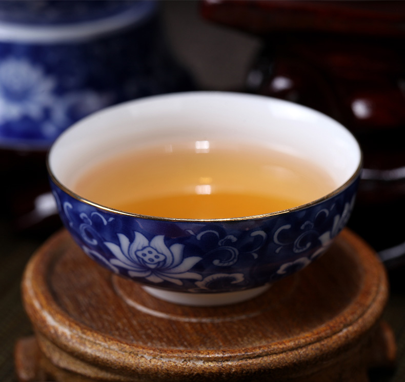 Whole set of green flowers tea set Kung Fu Porcelain Tea Set Group Sketching Gold Cover Bowl Hand-painted Tasting Tea Cup Green Flowers