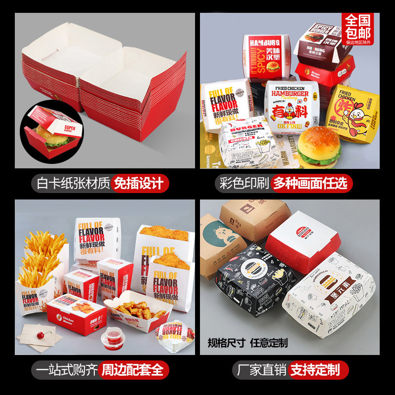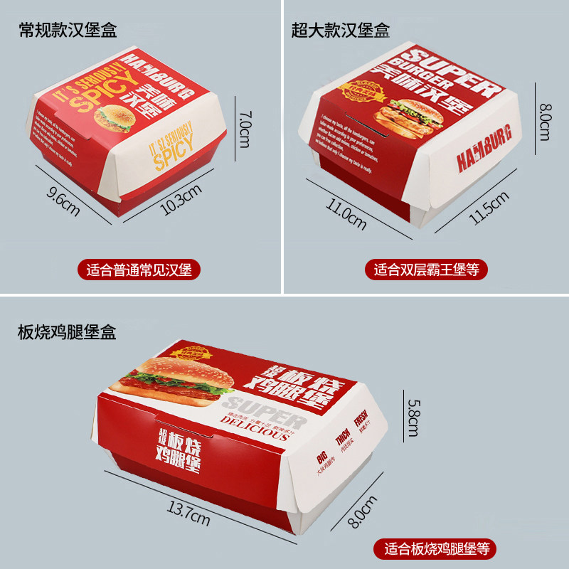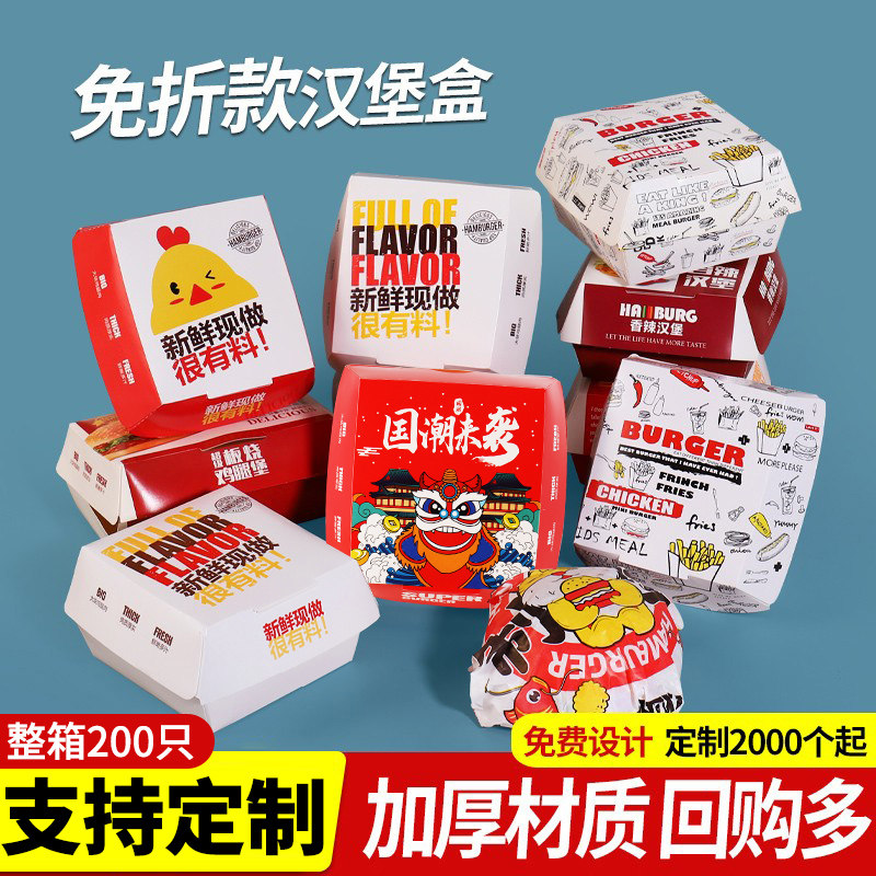 Hamburg box without folding takeaway oil-resistant hamburger box thickening disposable hamburger box commercial customization