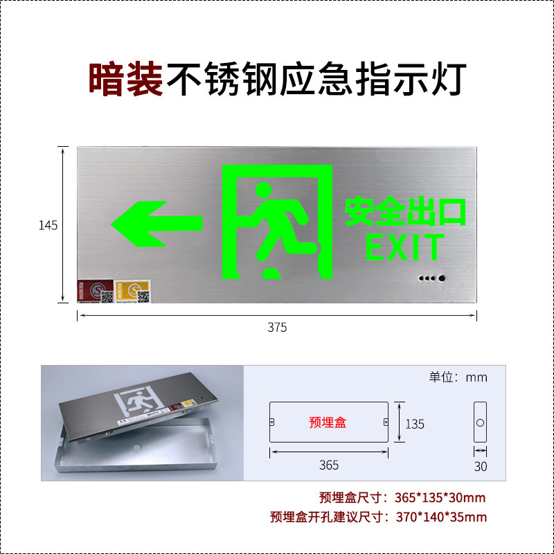 Aluminum alloy wire drawing panel fire safety exit indicator LED evacuation sign embedded dark loading low pressure