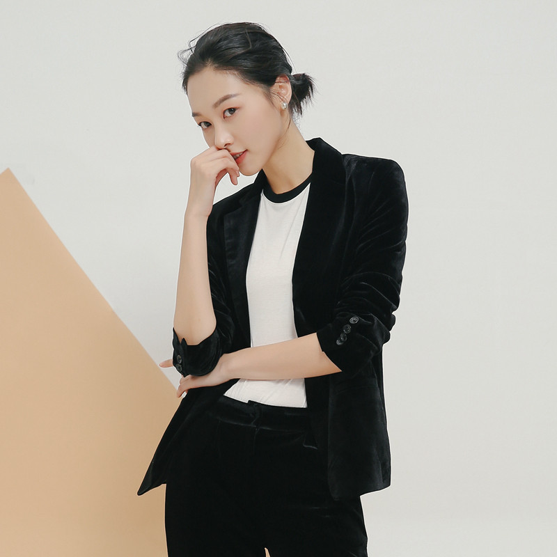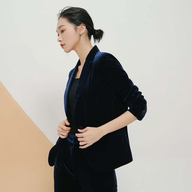 2020 autumn gold velvet women's high-end European and American slim velvet suit women's jacket OL professional small suit jacket