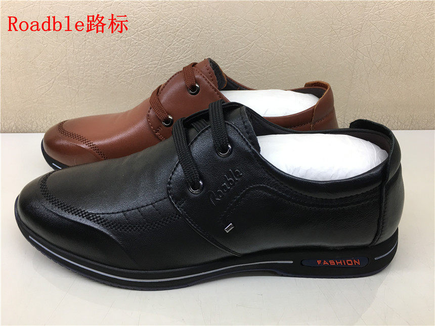 Road signs Genuine Leather Fashion Business Gentleman Casual Round Head Laces Anti Slip Wear and Wear Pops Shoes Single Shoes Leather Shoes