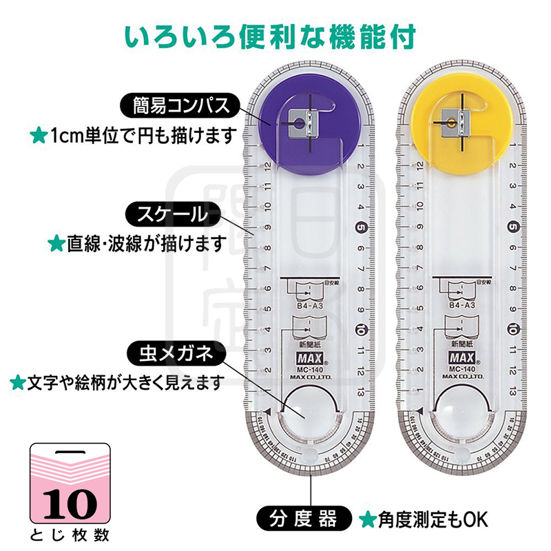 Japan imported MAX MAX primary school students with multi-function transparent ruler wavy ruler protractor drawing ruler