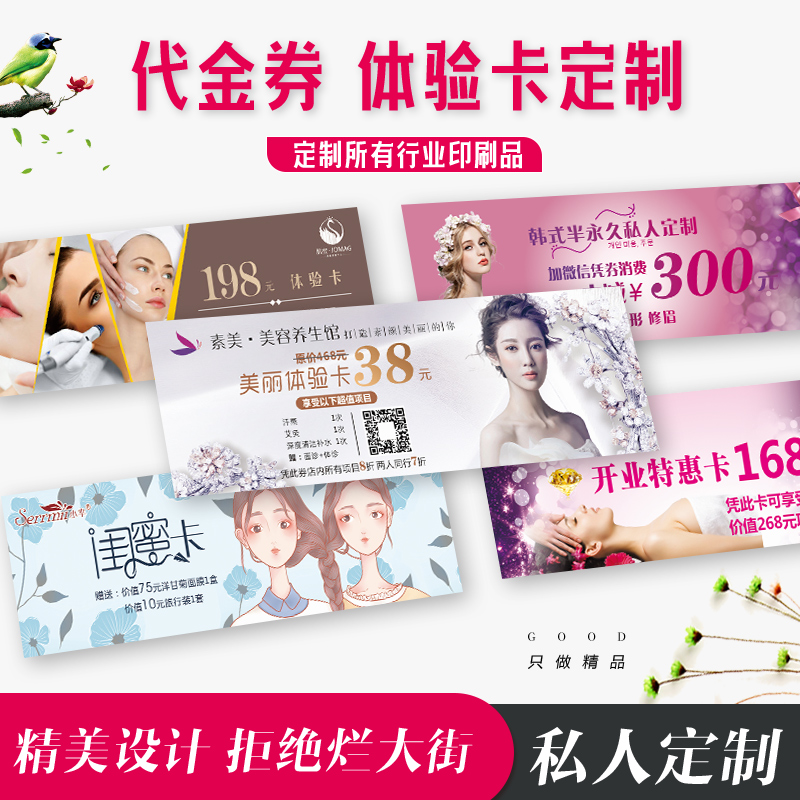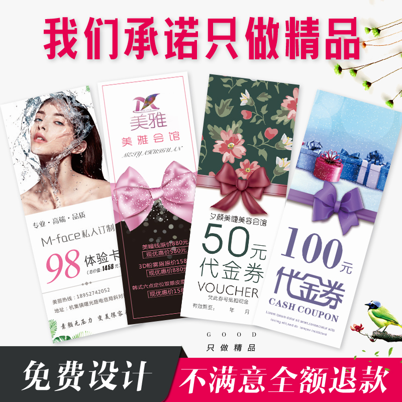 Beauty extension card Experience card Coupon voucher Cash voucher Admission ticket Raffle ticket Card customization
