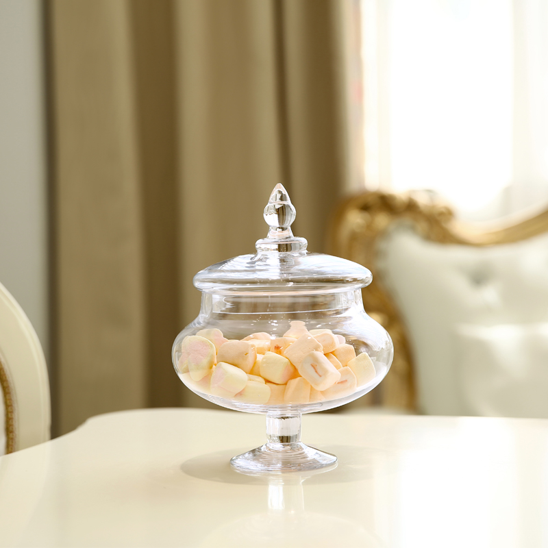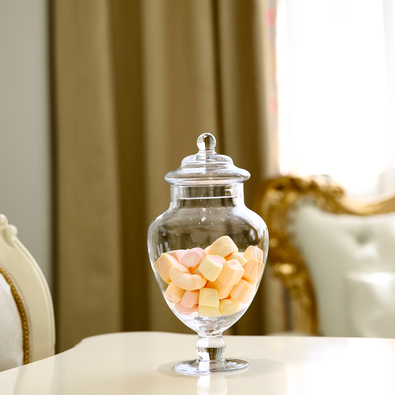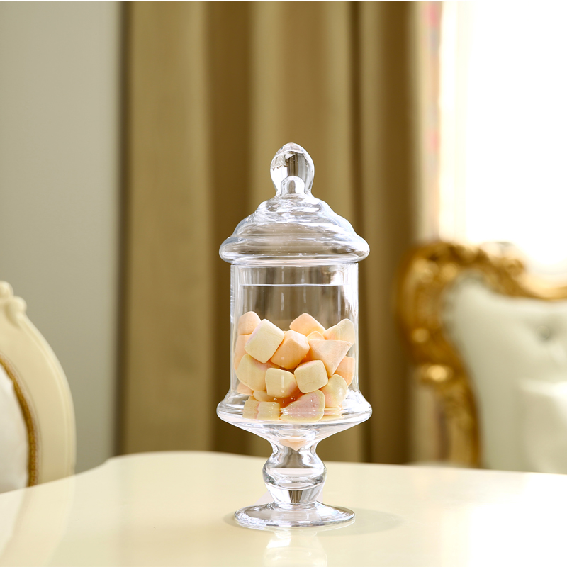 European-style transparent glass storage candy jar tall with lid sugar tank creative wedding dessert table soft home furnishings