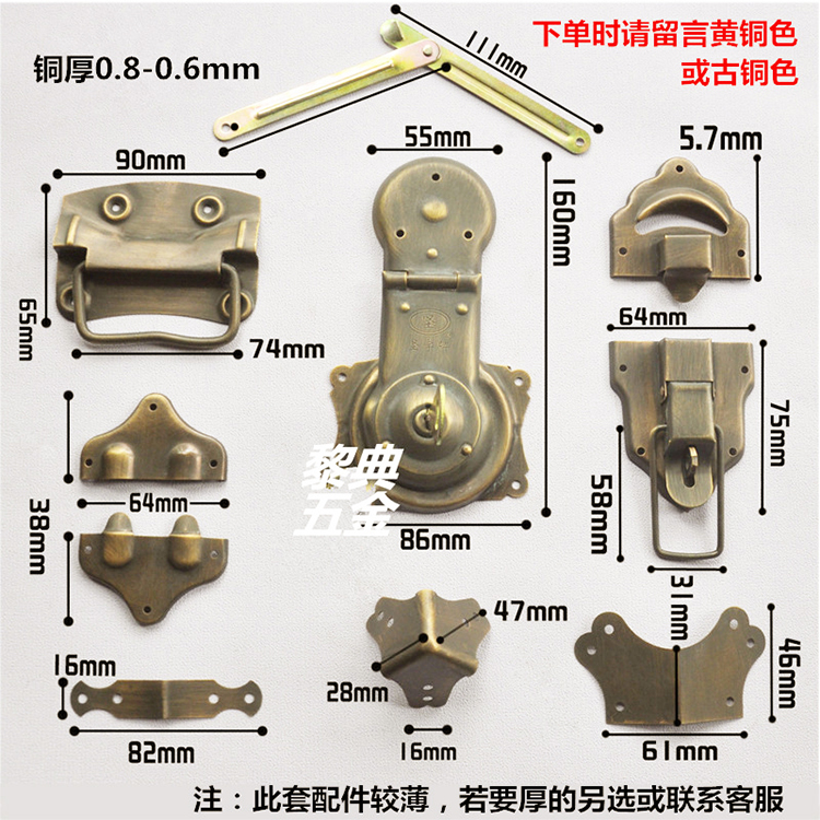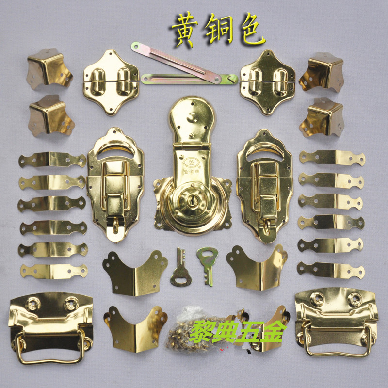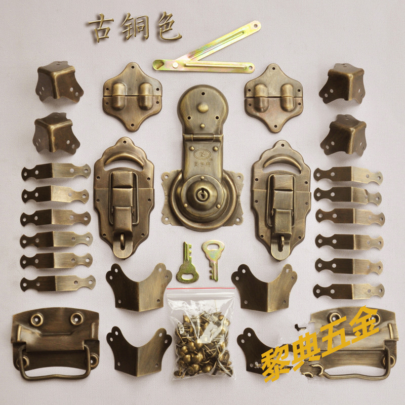 Camphor wooden box Copper accessories full set of pure copper old-fashioned Chinese retro wooden box lock buckle Copper lock corner handle set
