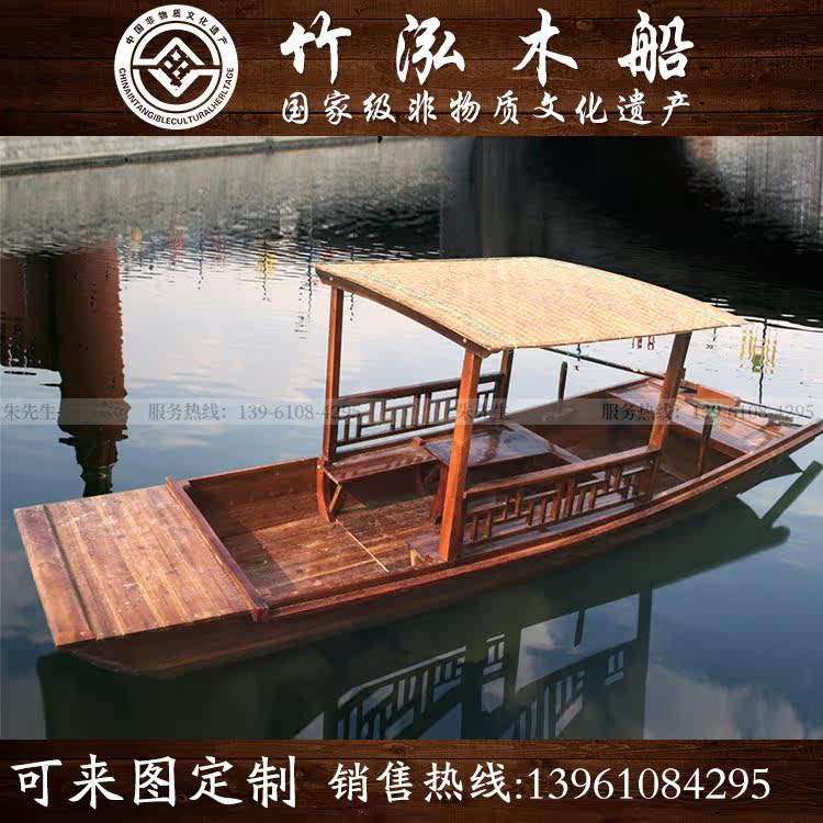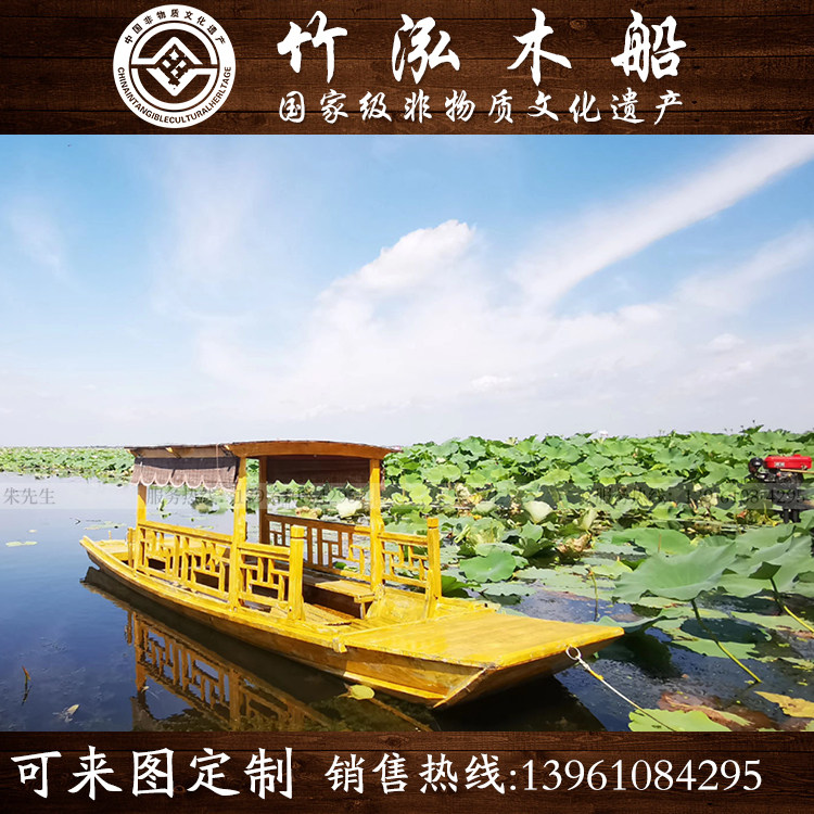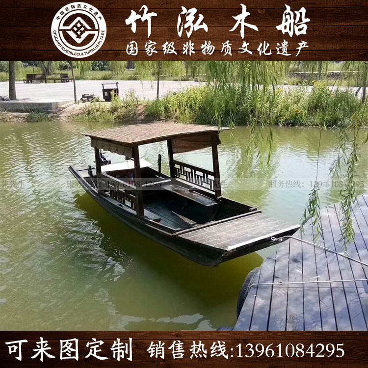 Single caravan hand paddling small wooden boat tourist west lake rocking oakeum boat decorated boat scenic area park fibreglass pleasure boat