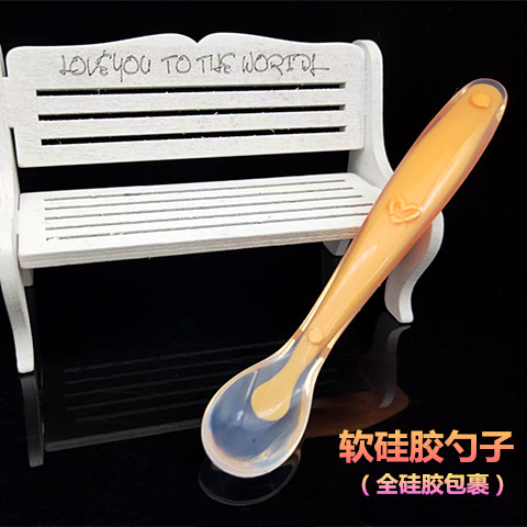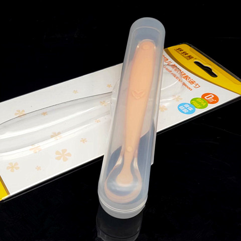 First baby Silicone Gel Soft Head Spoon Vice Food Tablespoon Long Handle Rice Burnt with water spoon Soup spoon can be boiled with pp containing box