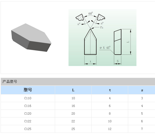Zhuzhou Diamond brand alloy thread turning blade YT15YT5 YG6 YG8 YW2 YW1 C116