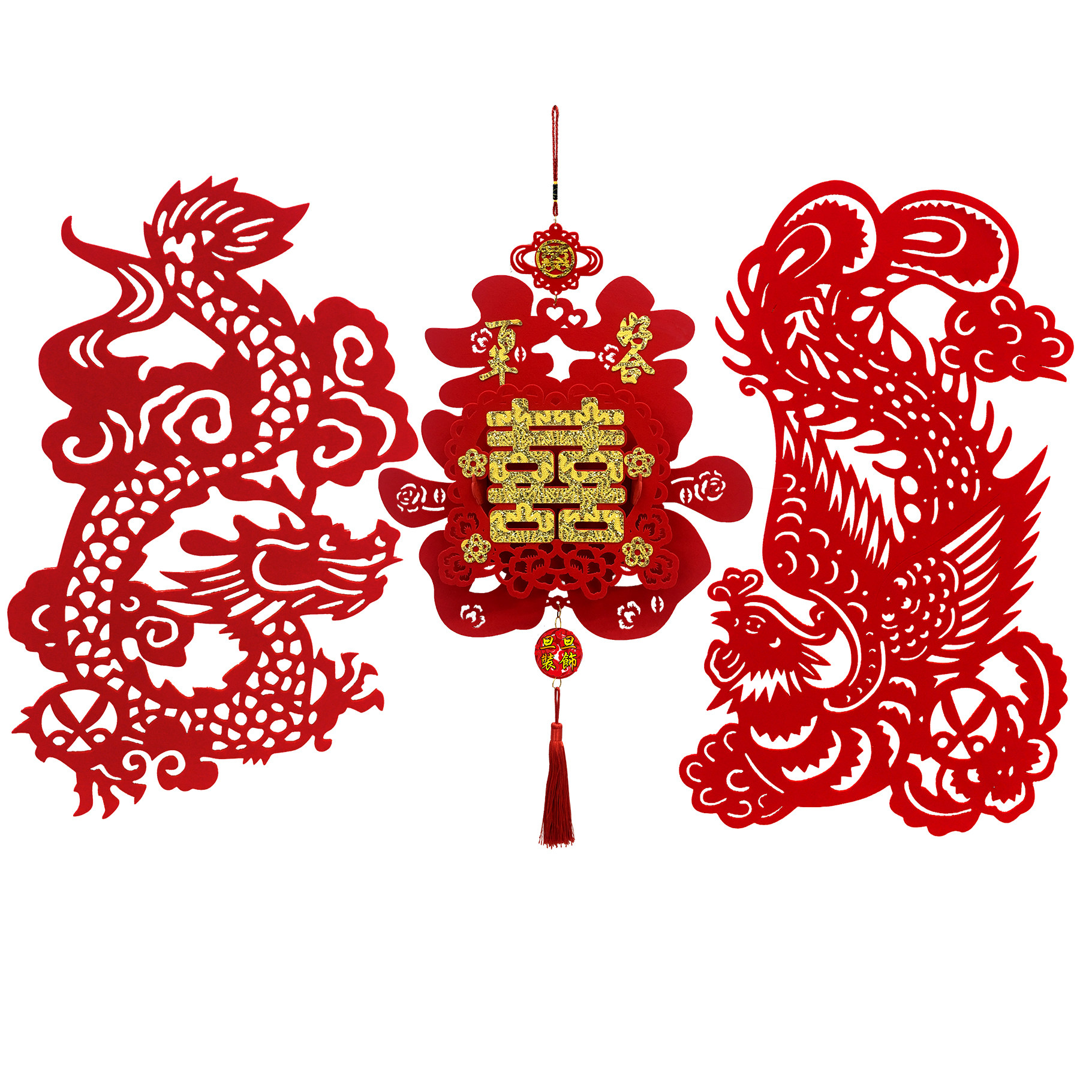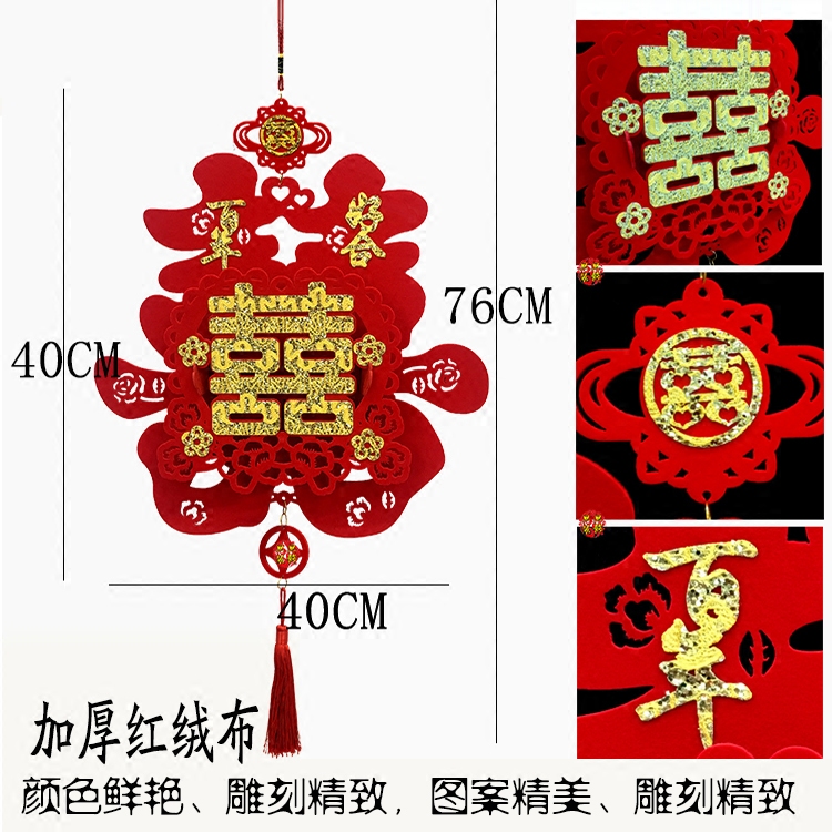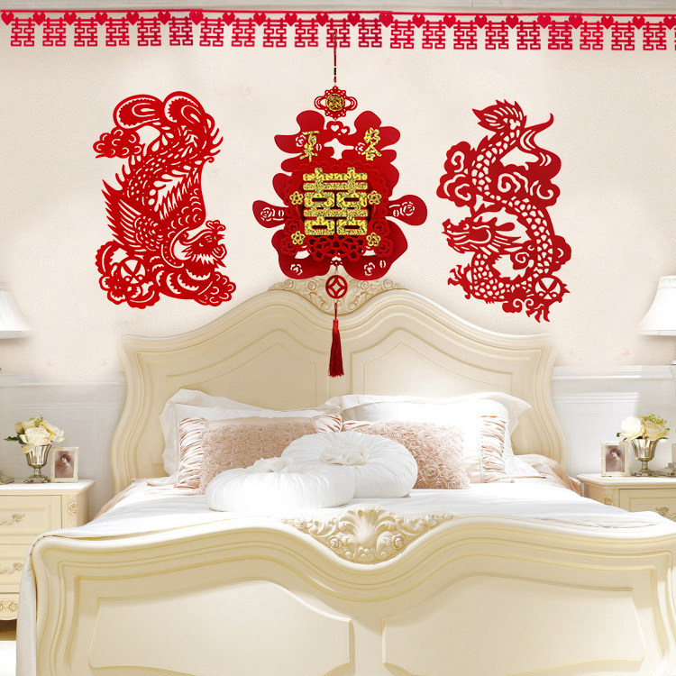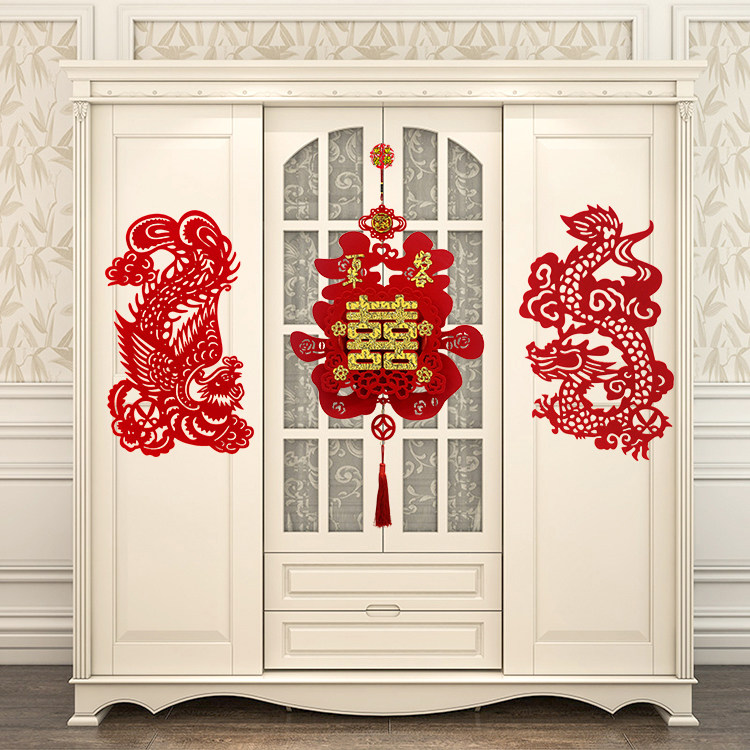 Dragon and phoenix presents an auspicious (red velvet) large red double joy (red velvet) Longfeng's auspicious suit Buy suit also send a happy character Oh wedding room background suit LOVE courting a flower (red)