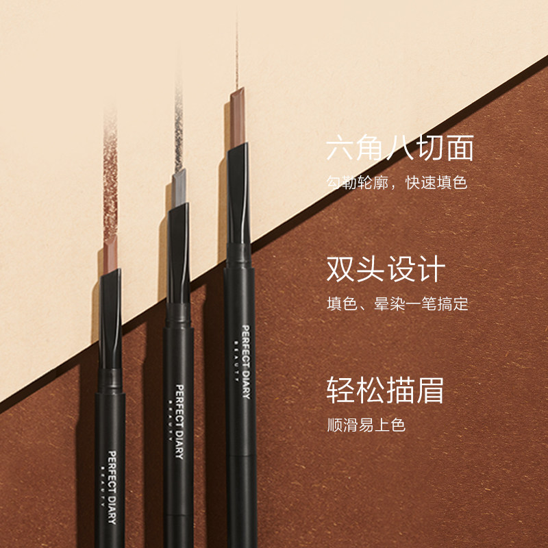 Perfect Diary Double-headed automatic hexagonal eyebrow pencil Waterproof sweat-proof Not easy to bleach Long-lasting not easy to smudge A word eyebrow