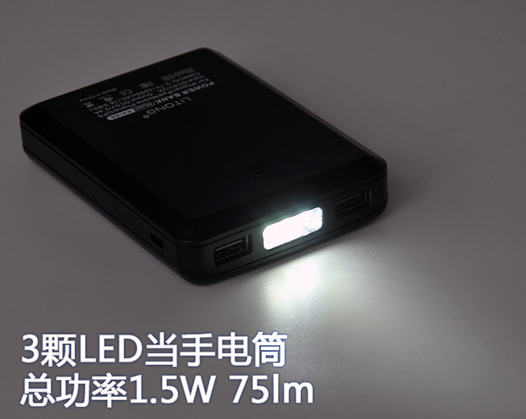Force Tong Double USB port Output 5V-2 4A Intense Light Flashlight 4 Festival 18650 Mobile charging