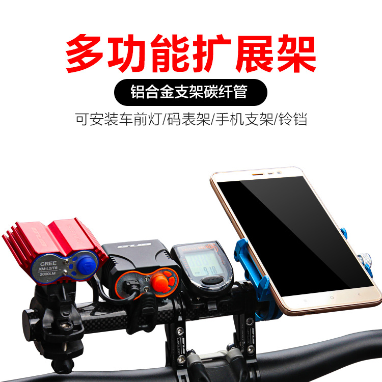 Bicycle multi-function extension frame computer light bracket clip double rod carbon fiber bracket flashlight bracket