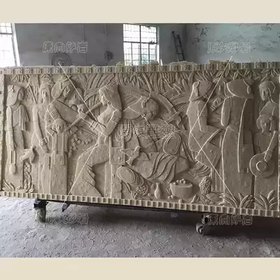 Sandstone relief Villa exterior wall decoration sandstone stone Thai character mural beauty salon front Logo Wall to celebrate the harvest
