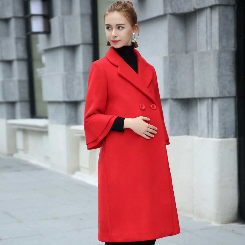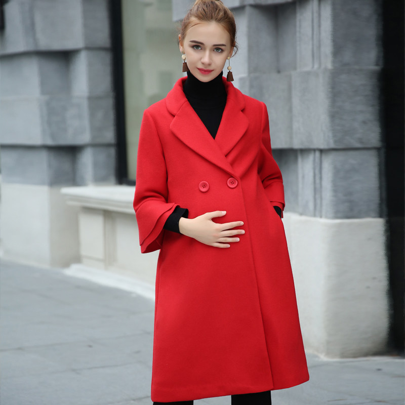 Business maternity clothing autumn and winter clothing pregnant wool coat female OL loose large size long winter coat tide mom