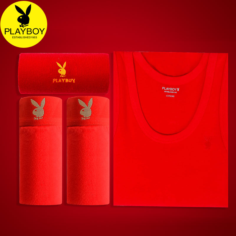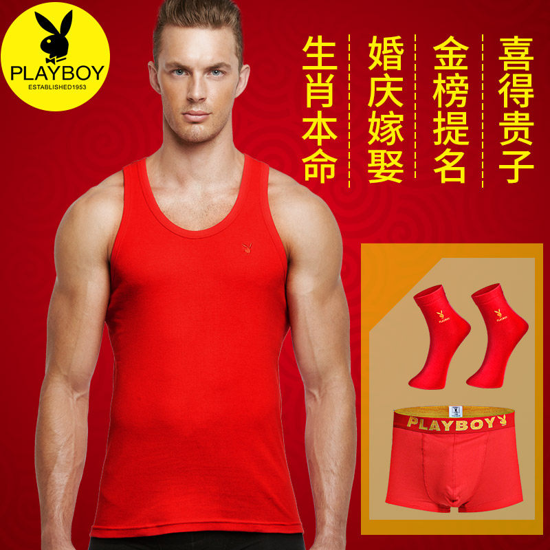 Floral Playboy red vest men married this year pure cotton inside wearing a tiger year bottom male red cross-bar sweatshirt