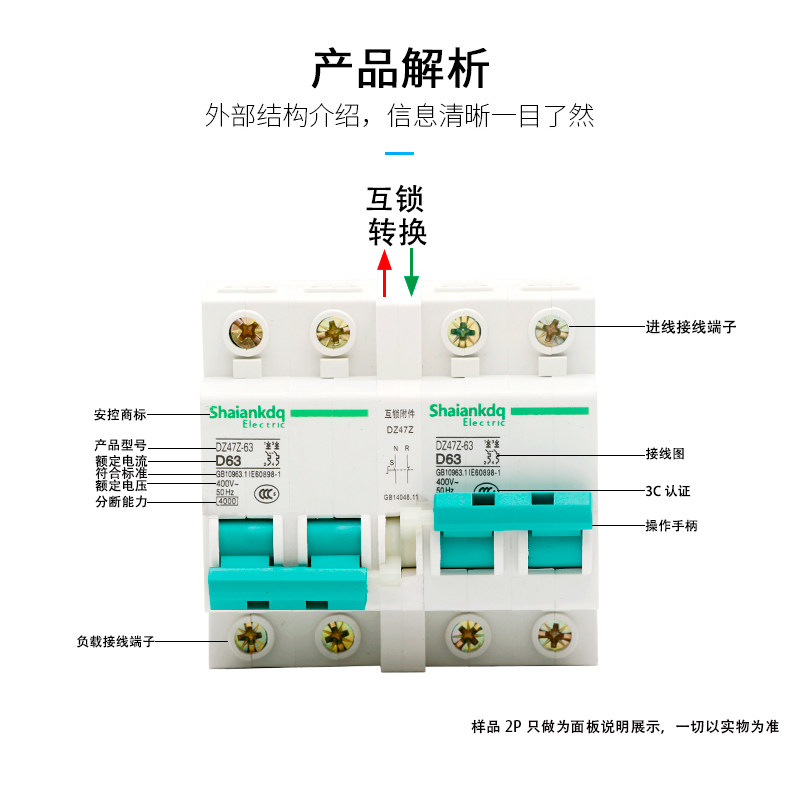DZ47Z-63 2P D type 63A interlocking circuit breaker interlocking air open household dual power automatic transfer switch