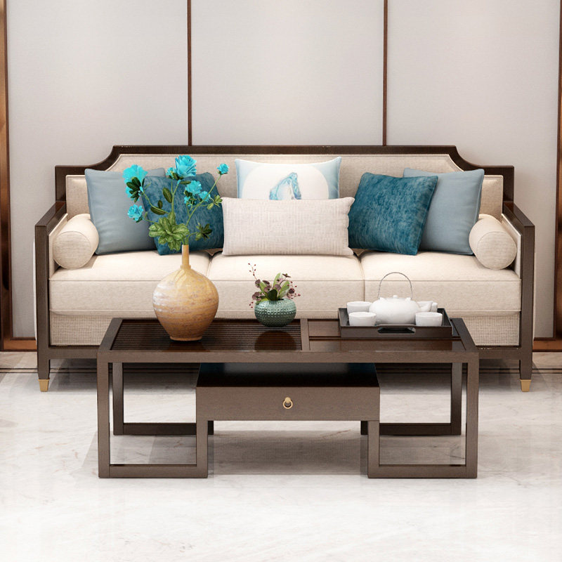 New Chinese style solid wood sofa combination modern simple living room model room clubhouse fabric sofa Zen custom furniture