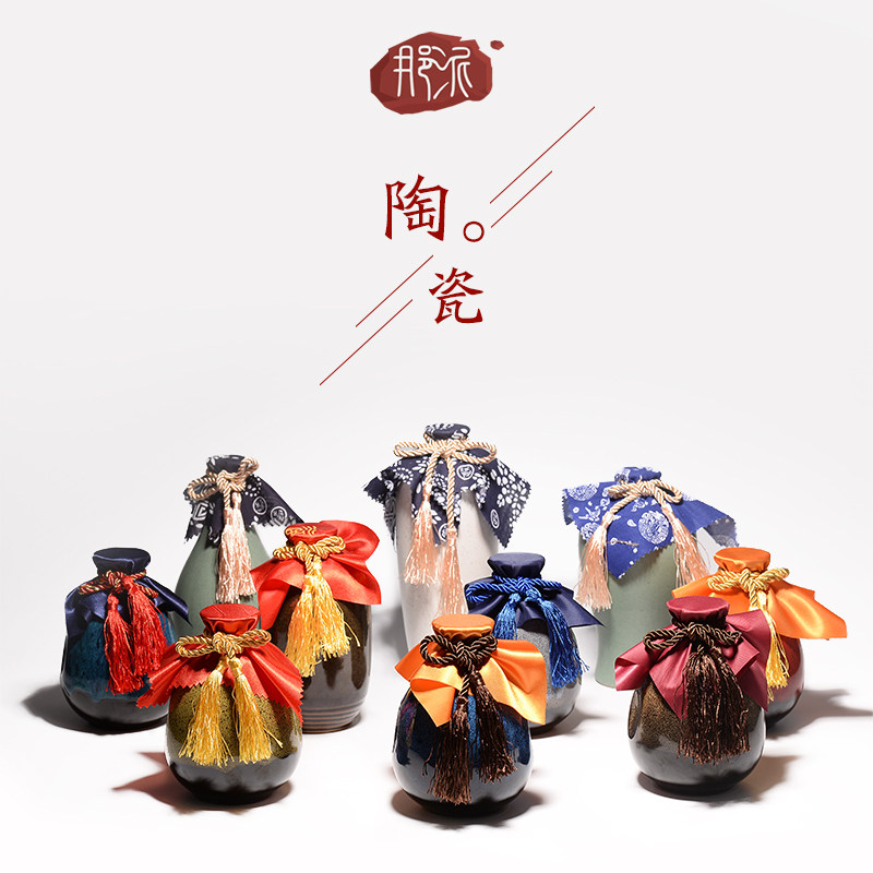 1 catties of 500ml Yixing kiln changed to wedding wine bottle wine jar hand grab bottle flower pot ceramic decoration pottery pot color glaze wine bottle