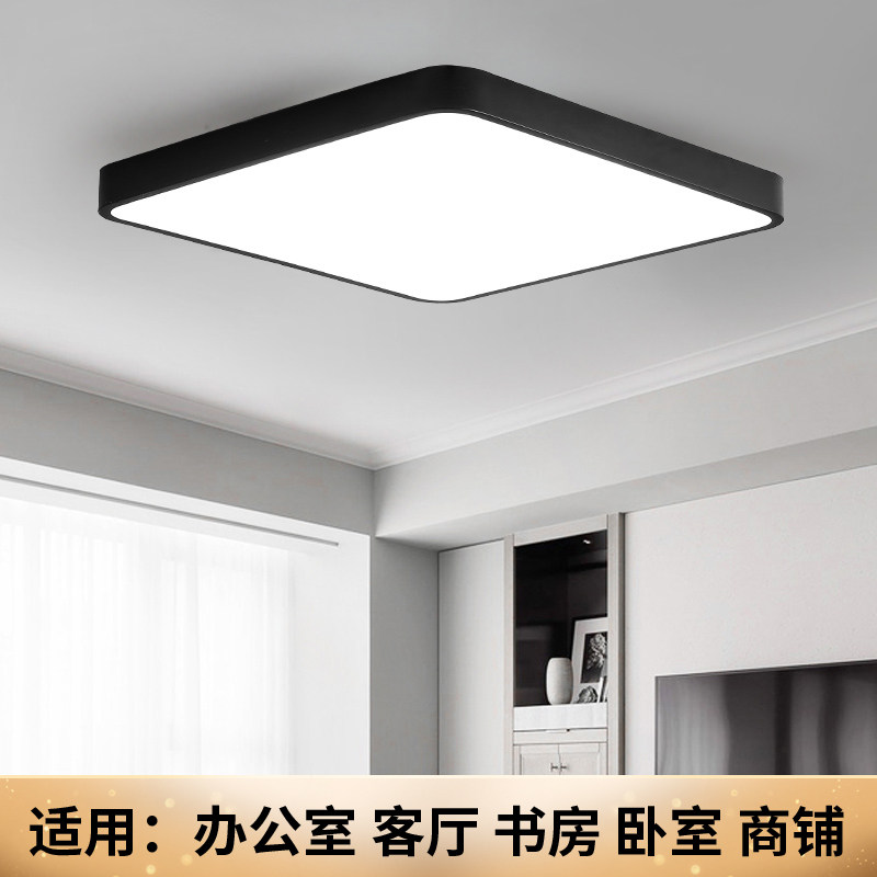Rectangular LED suction ceiling lamp modern minimalist thin section office lamps black and white iron art flat lamp Creative lamps