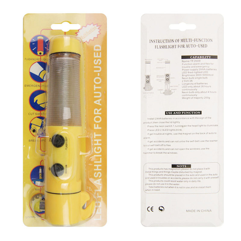 On-board Emergency Distress Flash Light flashlight Strong Magnetic Cuts Rope Instrumental Safety Hammer Lifesaving Hammer Escape Window Breaking Tool tool