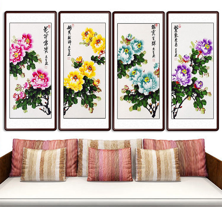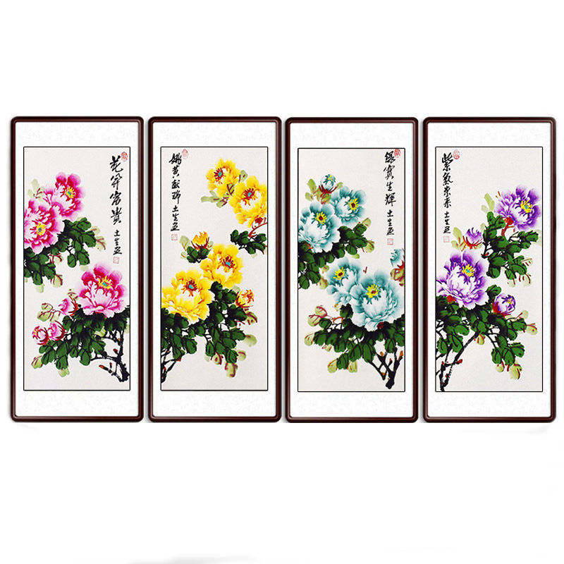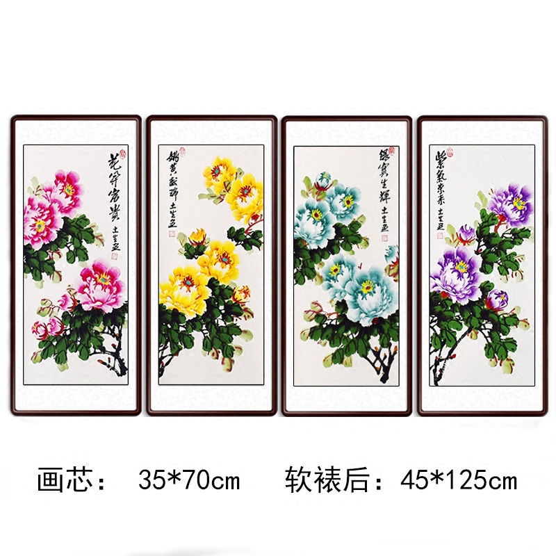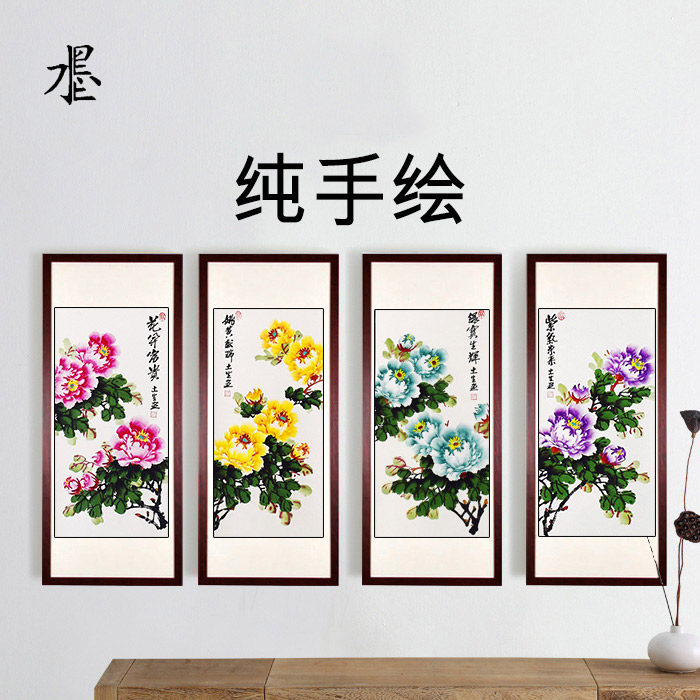 Middle hall painting Living room bedroom entrance decorative painting Chinese painting Peony hanging painting Scroll axis Four screens Pure hand-painted authentic calligraphy and painting