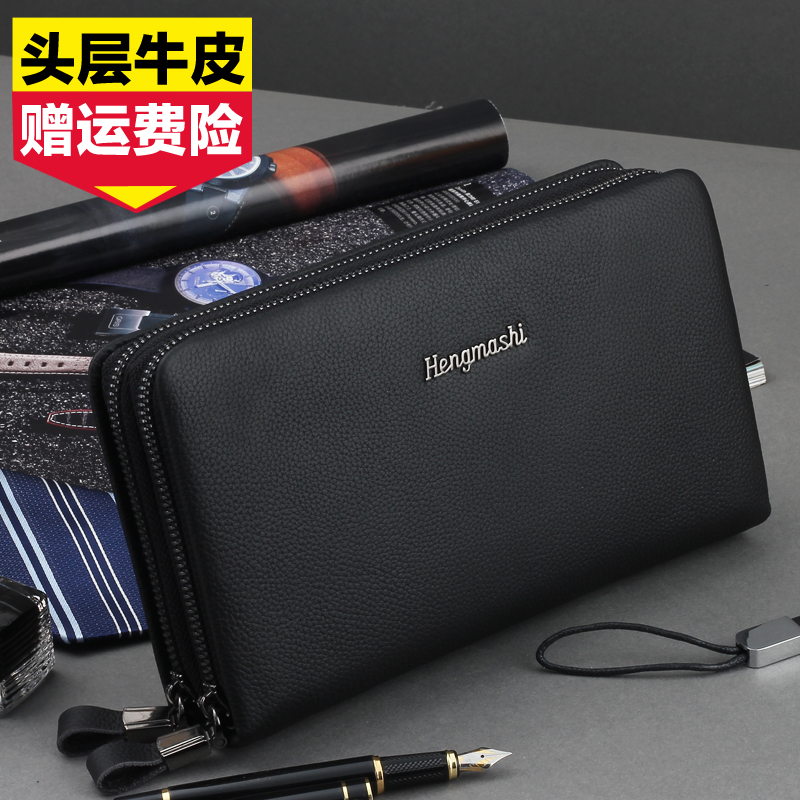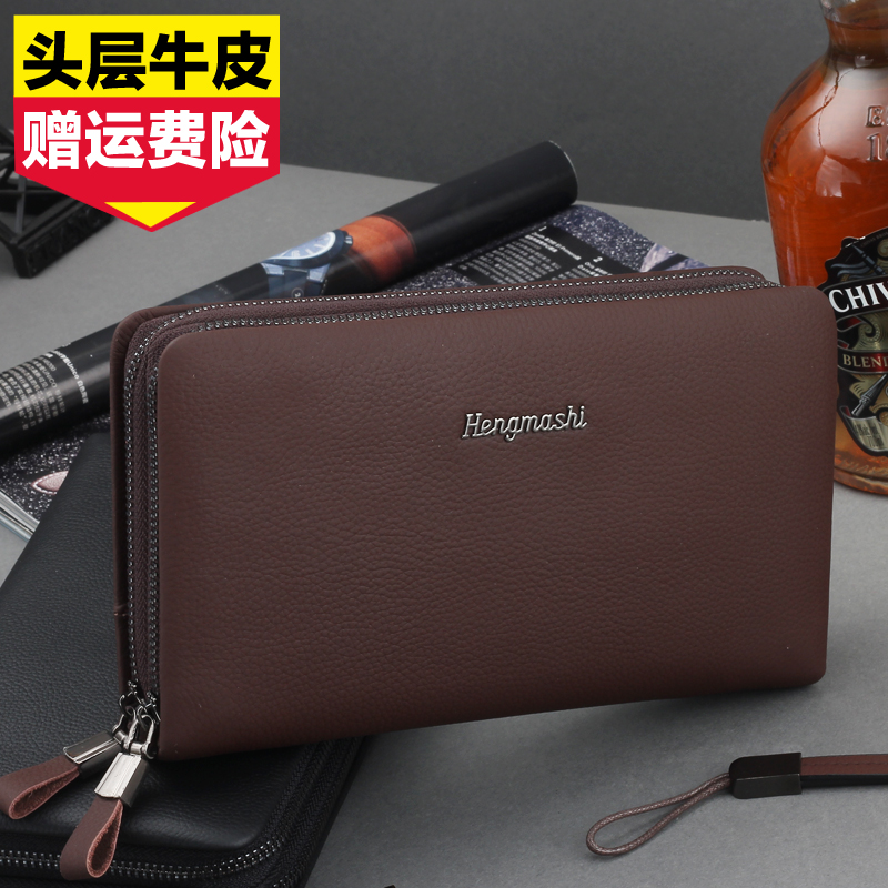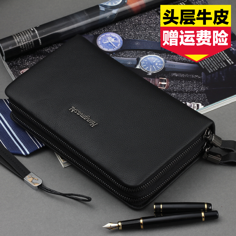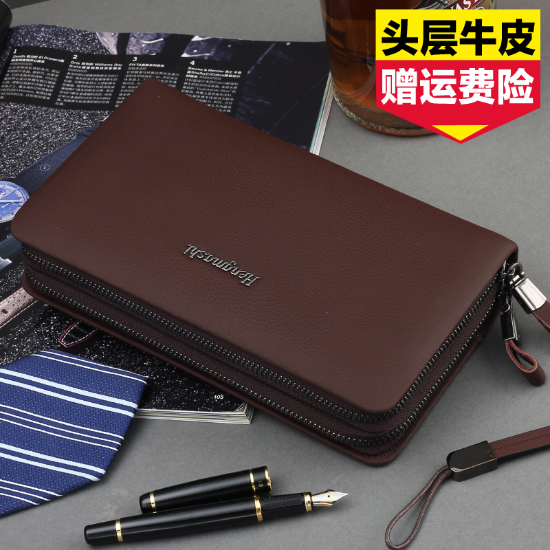Men's handbag 2017 new clutch bag large-capacity clutch bag first layer cowhide leather soft double-layer zipper business