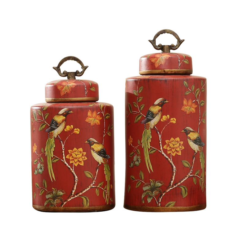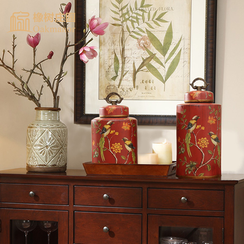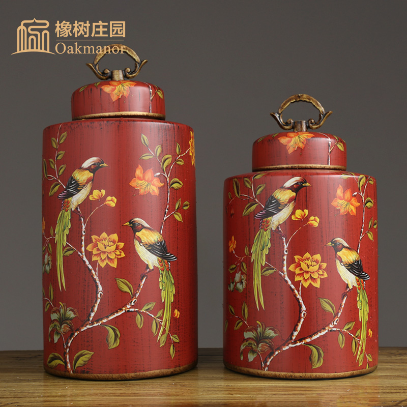 European candy jar ceramic storage jar desktop ornaments with lid American retro moisture-proof jar new Chinese sealed jar