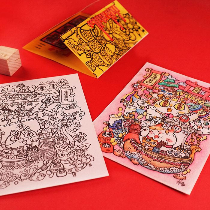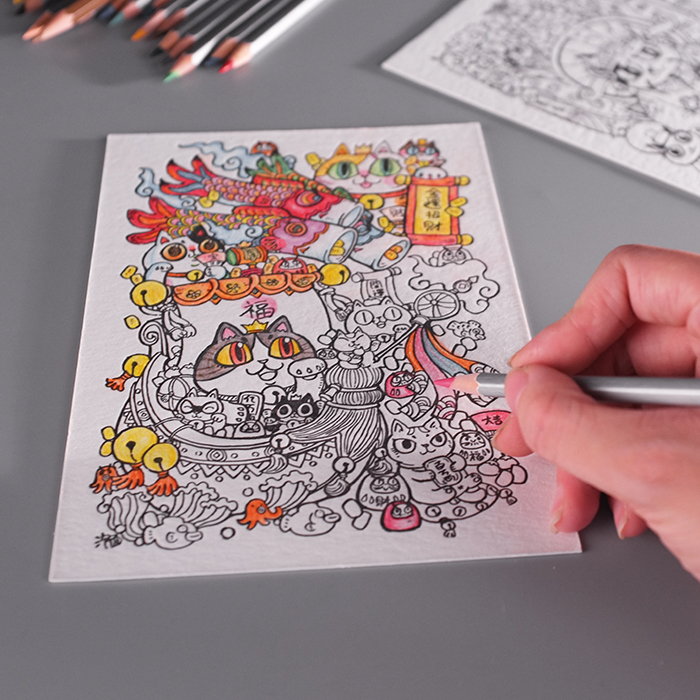 Fangcunli new printing products x three bags of commissary cute cat coloring card color pencil set gift gift box