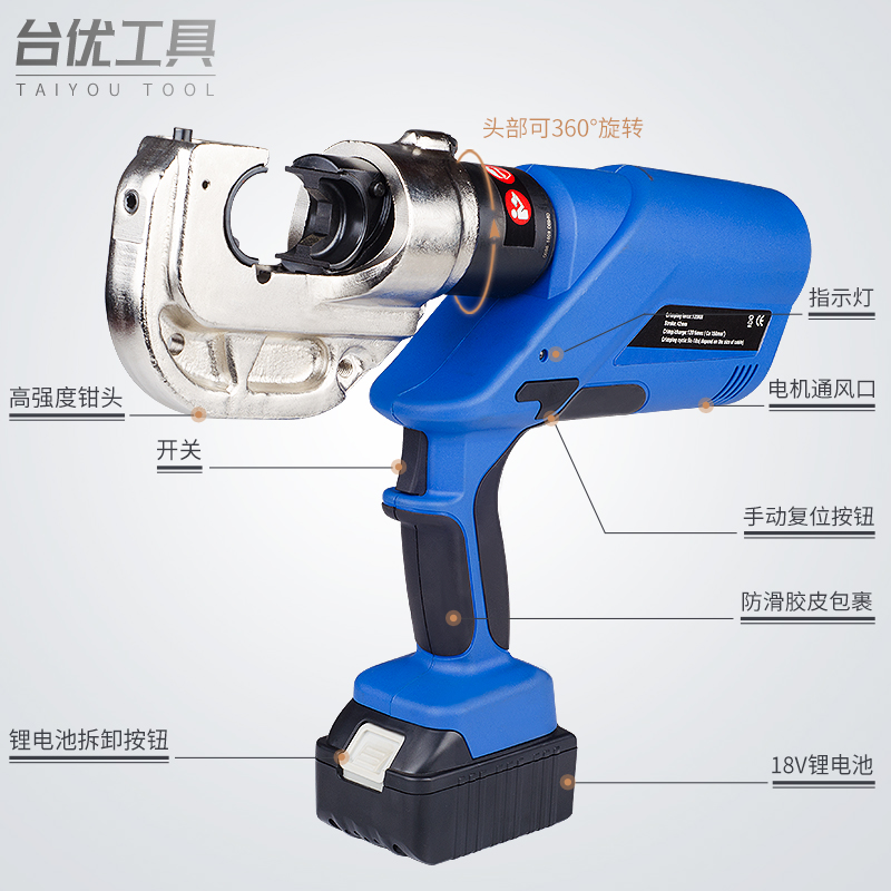 Taiyou rechargeable hydraulic pliers small lithium battery fast electric crimping pliers EZ-300 400 copper nose integral type