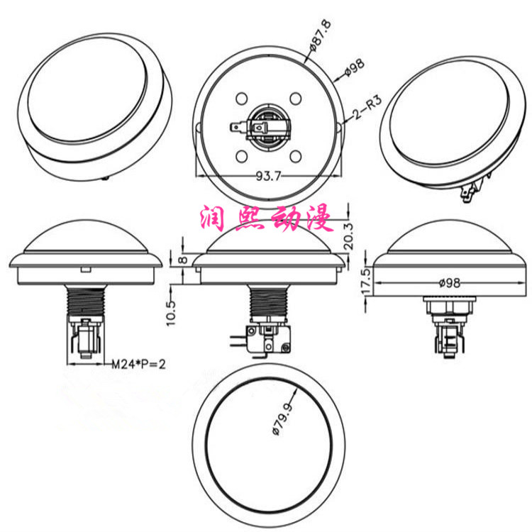 100mm button answering machine Good sound challenge ten seconds Small drummer game machine accessories big button reset switch