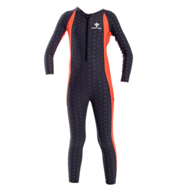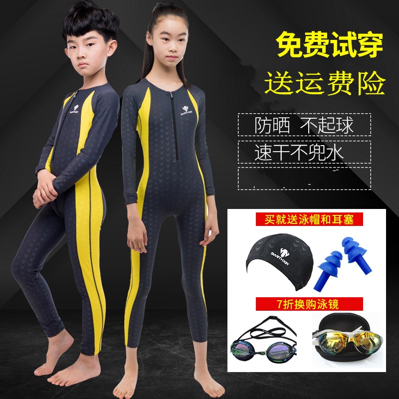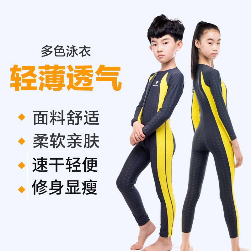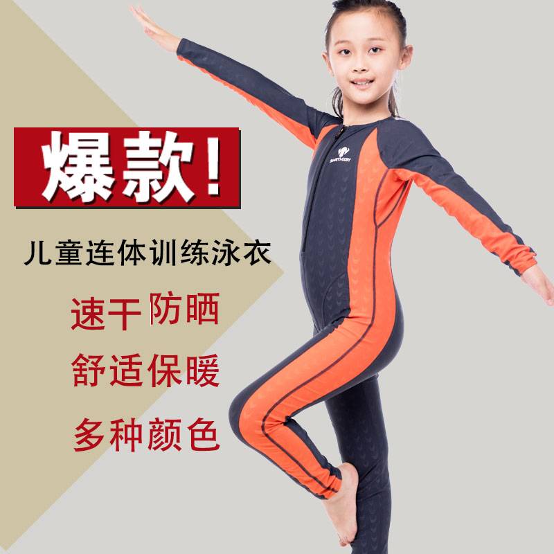 Children's one-piece quick-drying swimsuit Sunscreen training Middle and large children professional girl boy long sleeve warm and cold bathing suit
