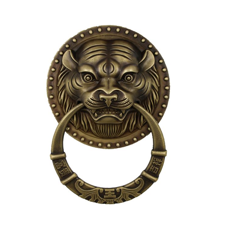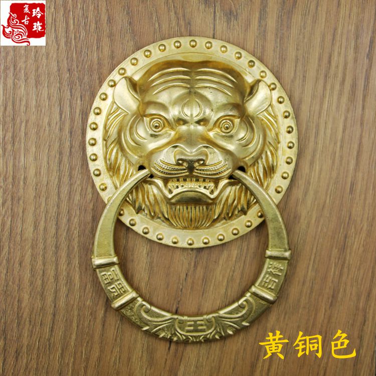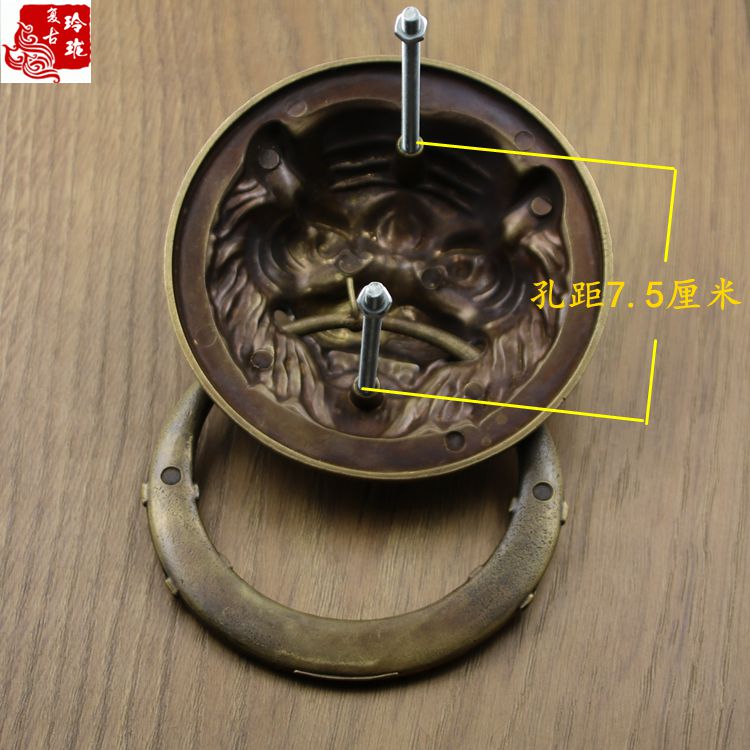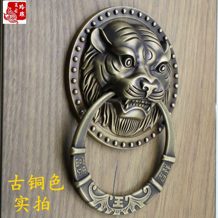 Chinese Imitation Antique Gate Pure Bronze Handle Monastery Door Old Tiger Head Door Ring Handle Door Plucking Decoration Pure Copper Accessories