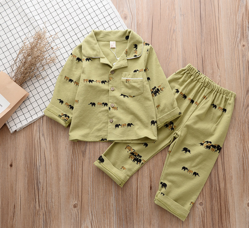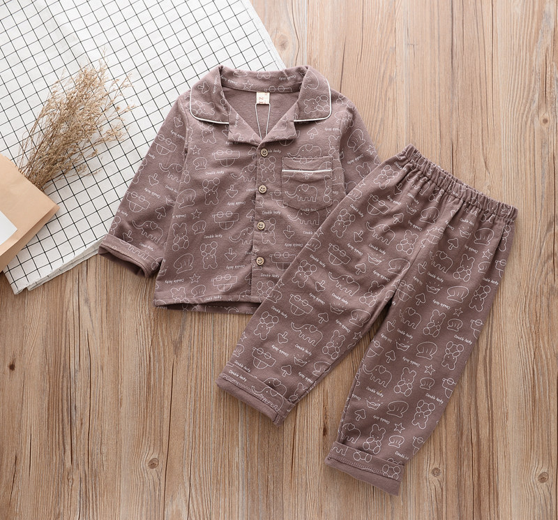 Autumn New Boy's Home Conserved Cartoon Animal Printed Mill Wool Pure Cotton Home Suit Suit