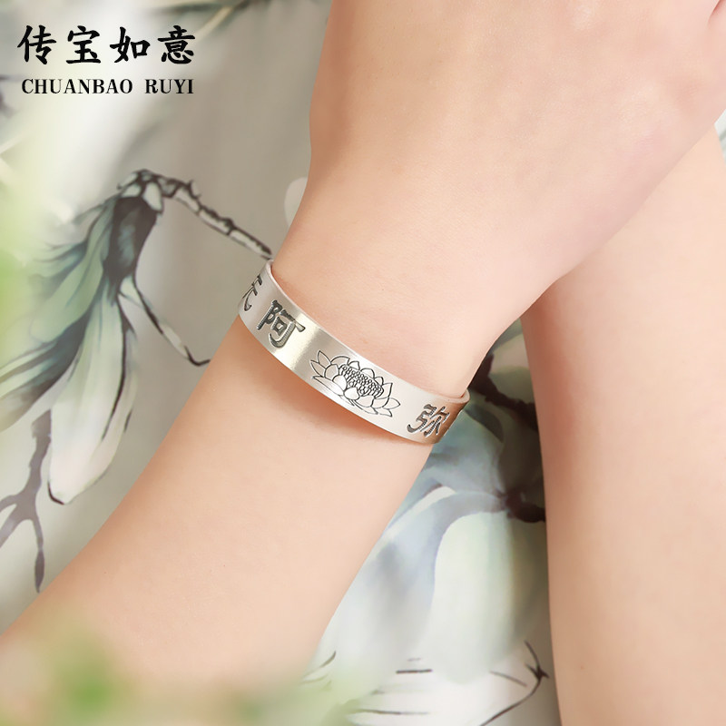 South No Amitaba Buddha bracelet pure silver 9999 lotus lotus leaf full text heart warp with bracelet Six words true Ornament Jewelry