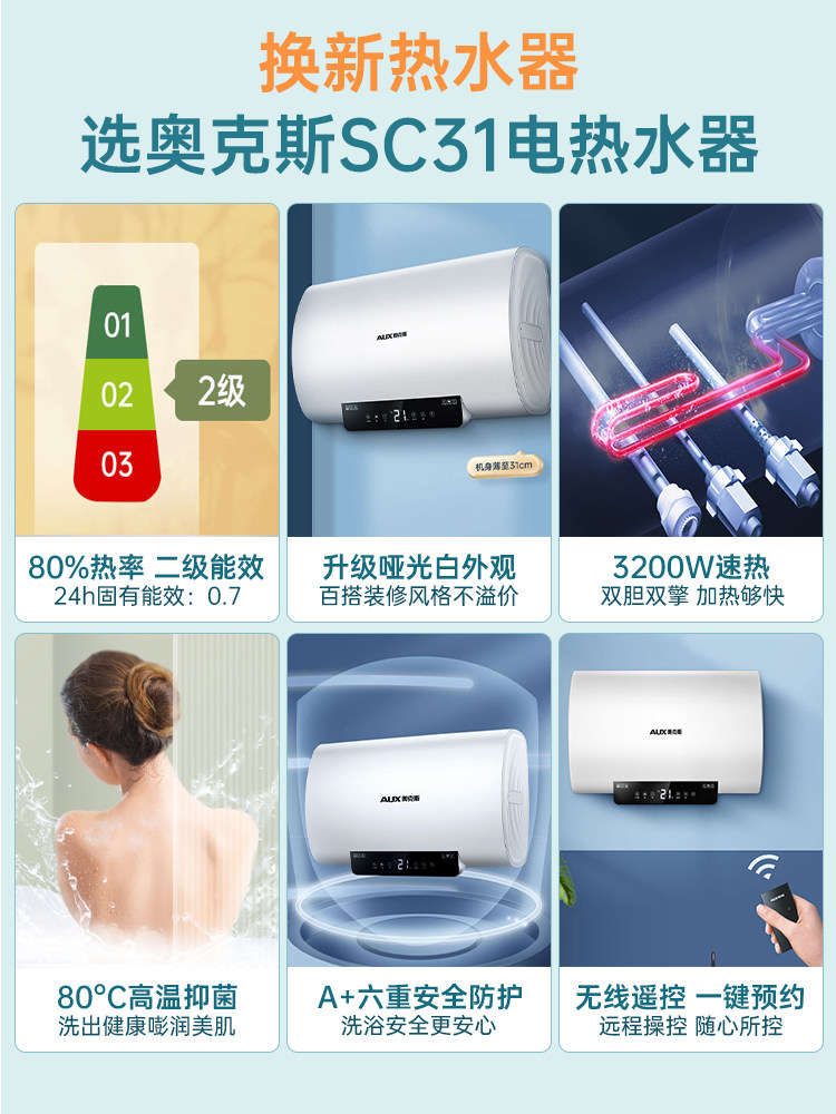 Ox Water Heater Electric Home 60 Liters Ultra Slim Flat Barrel Frequency Conversion Speed Heat 50 Liters Water Storage Toilet Bath 40 l