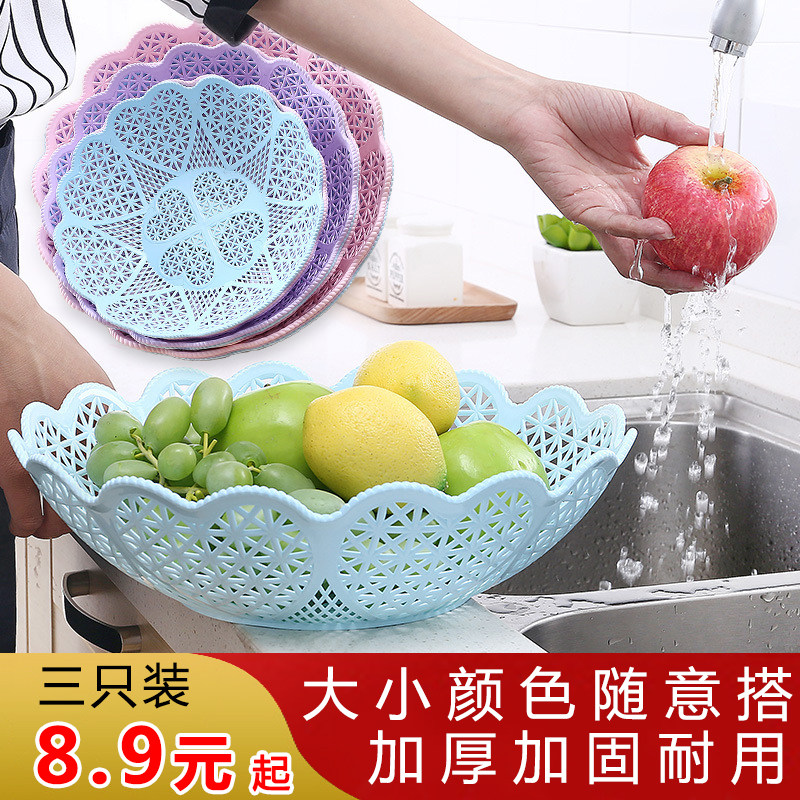 3 pieces of washing fruit basket washing basin hollowed out washing vegetable basket draining basket home large storage plastic basket simple