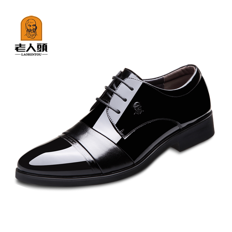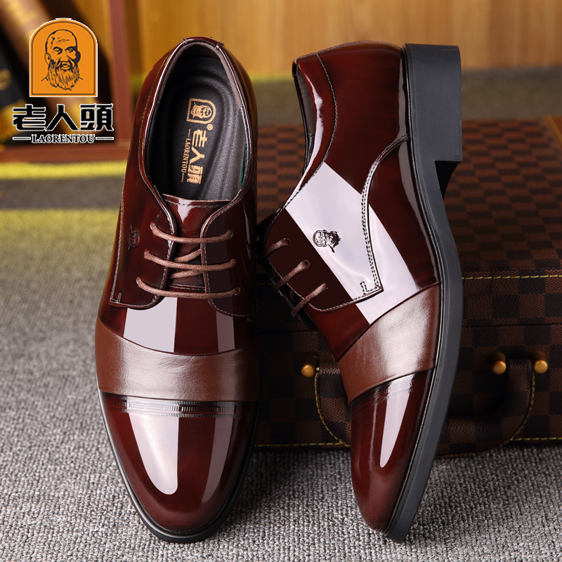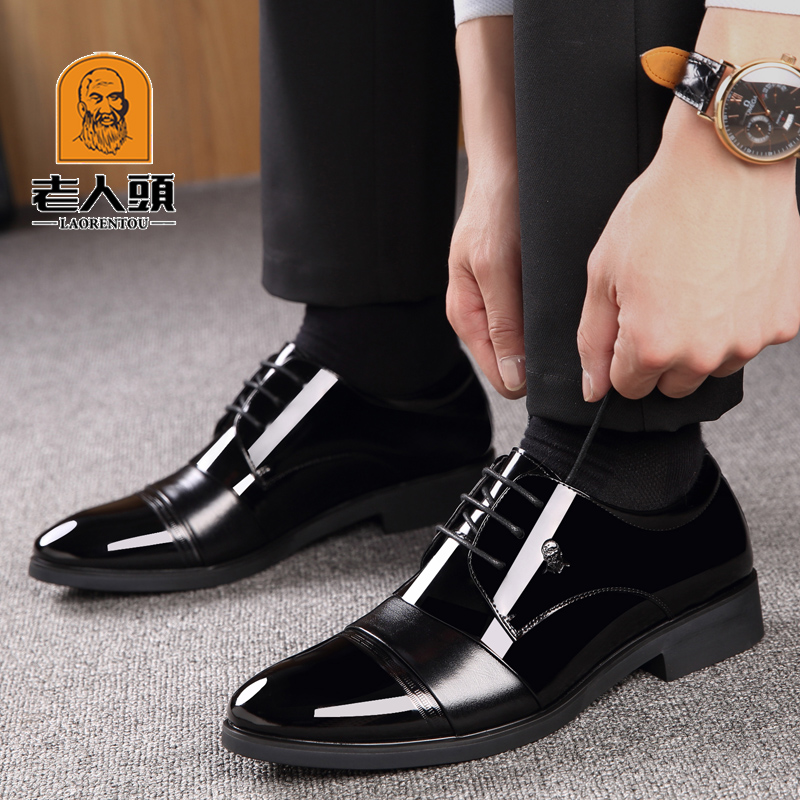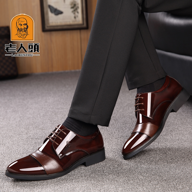 Old man's head breathable bright leather autumn leather shoes men's genuine leather business formal dress casual leather shoes lace-up patent leather wedding shoes