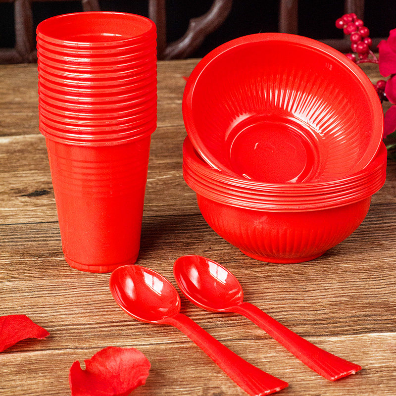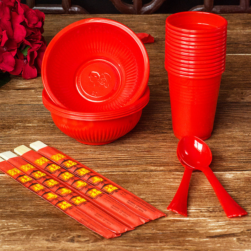 Mother's family wedding banquet disposable bowls and chopsticks men's and women's wedding table plastic happy bowl supplies props Daquan