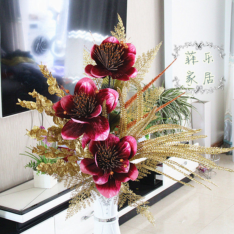 European-style gold powder peony flower set large magnolia flower living room floor-to-ceiling flower arrangement flower arrangement window decoration flash flower arrangement