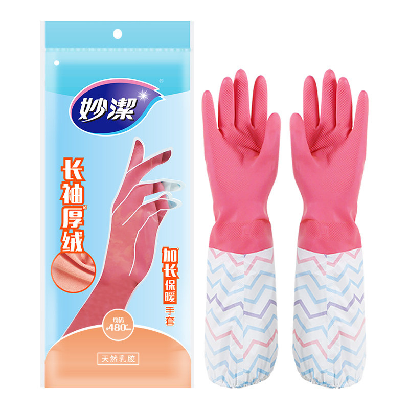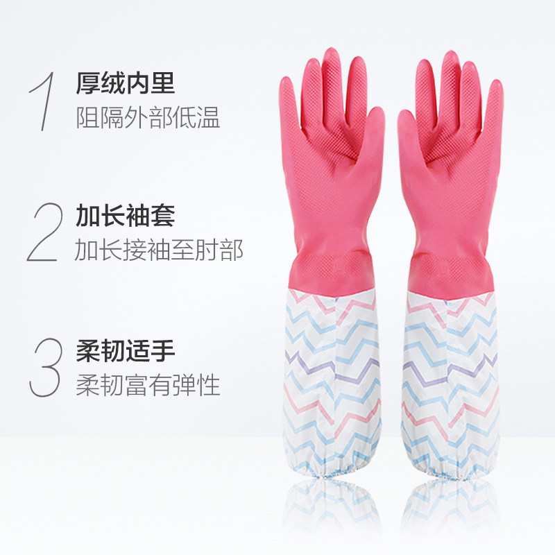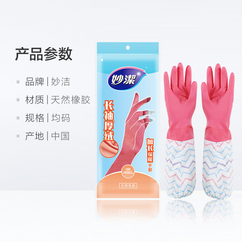 Miaojie durable housework plus fleece warm laundry kitchen dishwashing rubber epidemic prevention disinfection cleaning waterproof gloves 1 pair