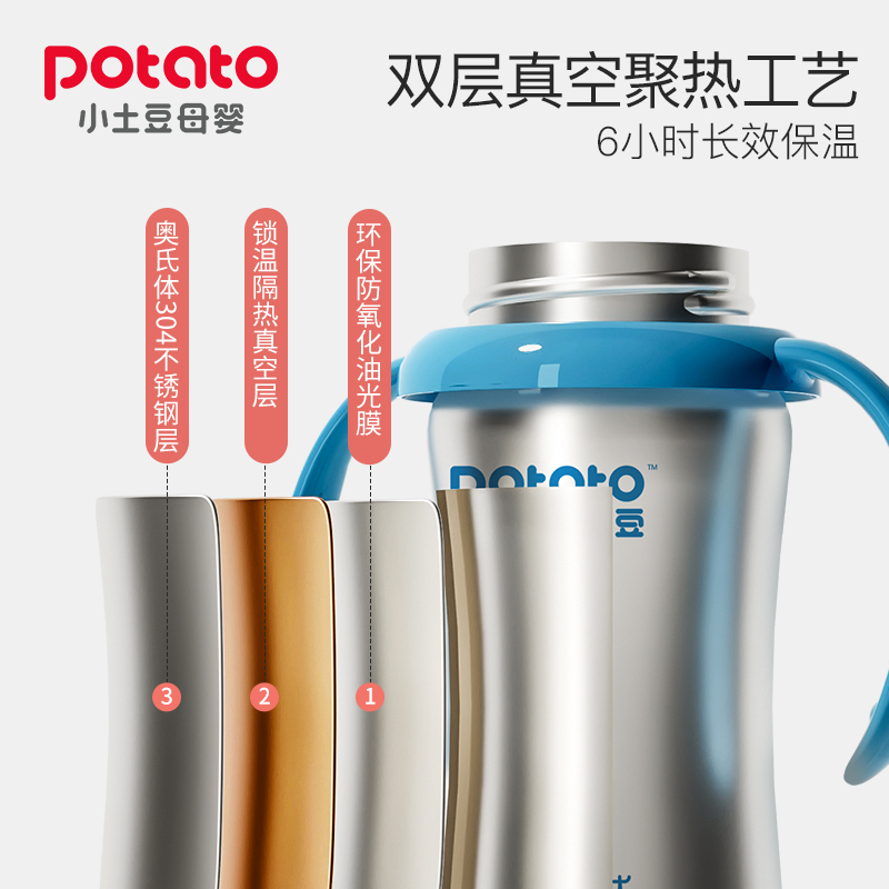 Small potato baby insulation bottle Stainless steel with handle Straw cup dual-use newborn baby wide mouth bottle
