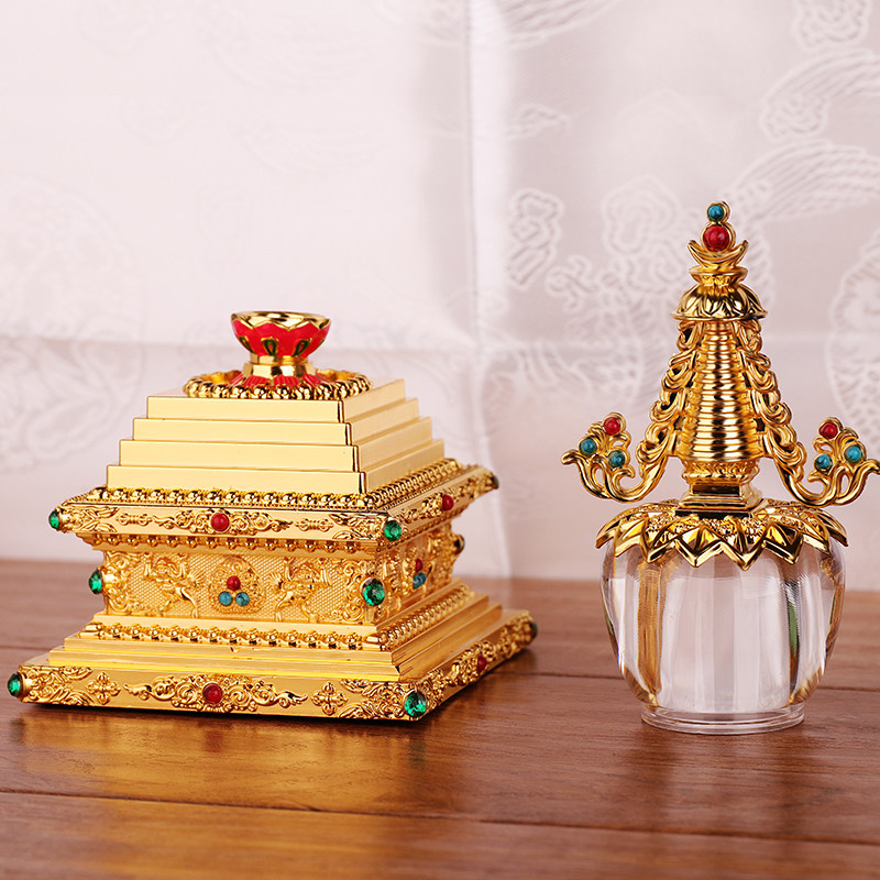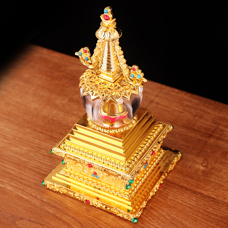 Tibetan Buddhism, Buddhist supplies, gold-plated crystal pagoda, Bodhi Tantra, Gadang Tower, 6 inches